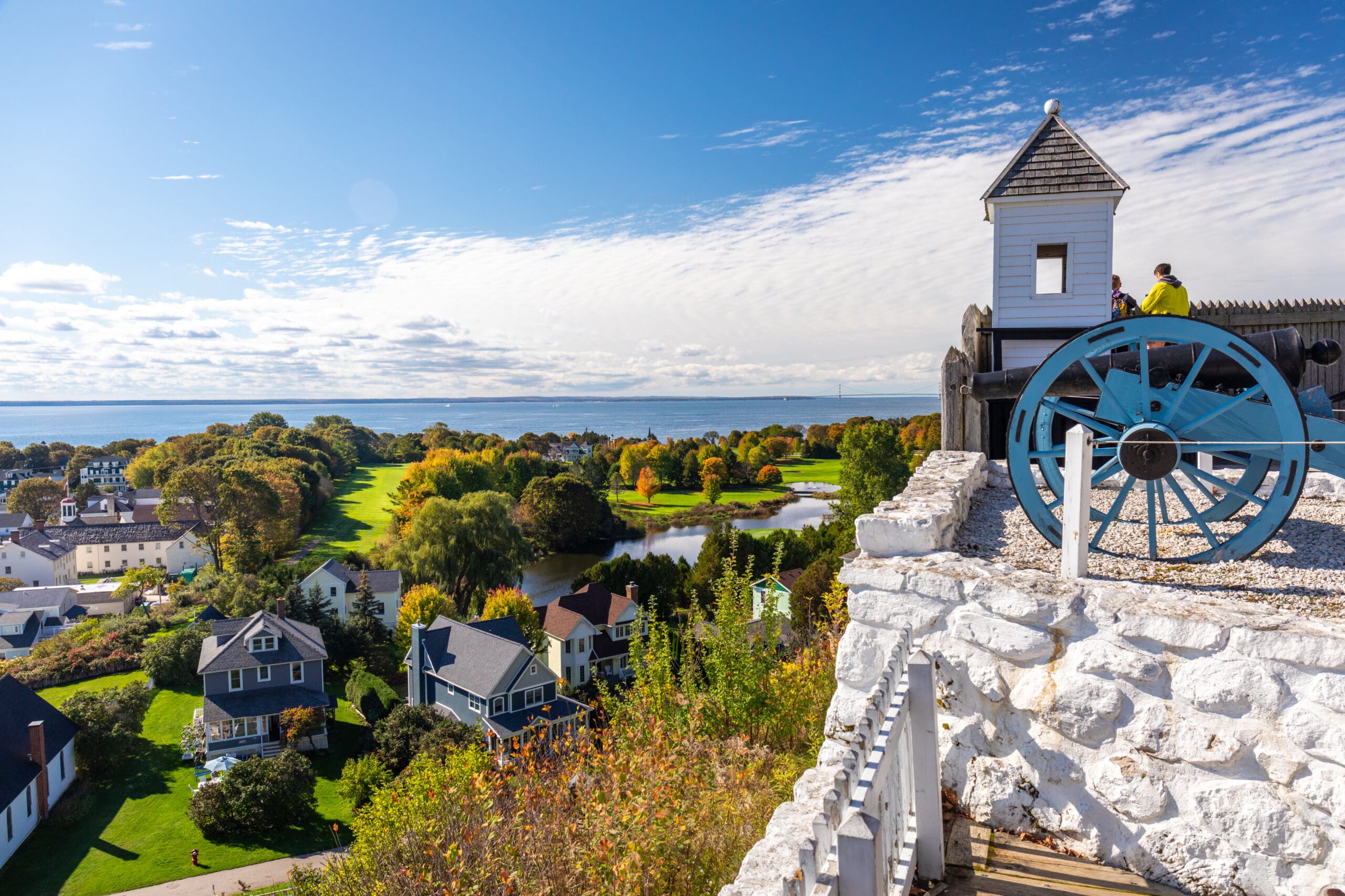Its name is derived from the Ojibwe word Michilimackinac, meaning “big turtle,” inspired by the island’s shape. The region served as a primary fur-trade hub as early as the 1600s before becoming home to Fort Mackinac under British control in the late 1700s. The island also played a pivotal role during the War of 1812 as the site of several consequential battles.